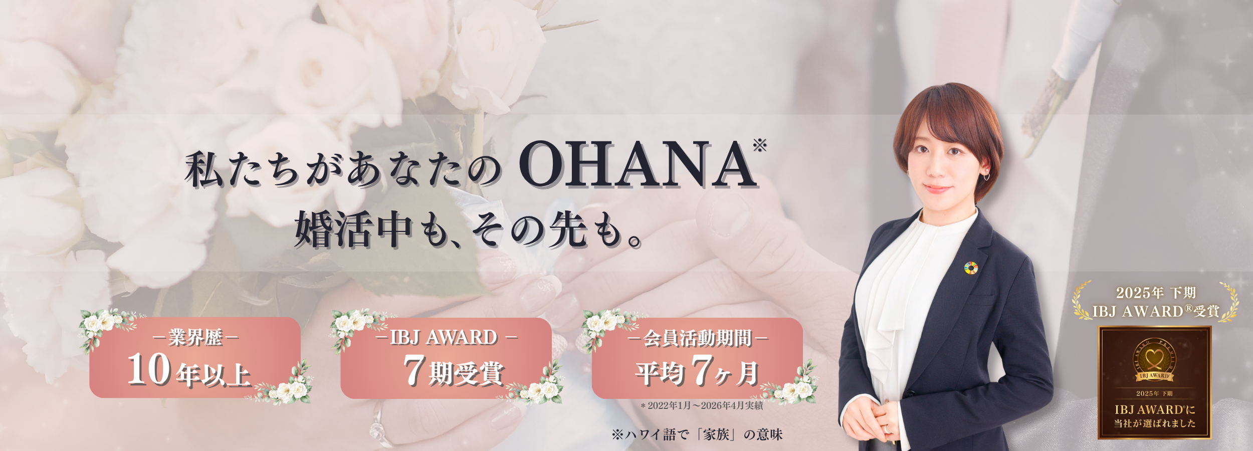 親会社は地域で30年以上続く旅行会社。弊所のスローガンは「私たちがあなたのOHANA。婚活中も、その先も。」