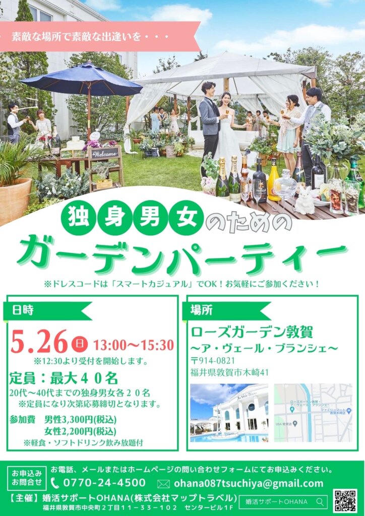 独身男女のための「ガーデンパーティー」開催のお知らせ