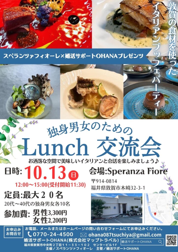 20代〜40代までの独身男女の皆さま!10月13日(日)は12時〜敦賀市スペランツァフィ… -