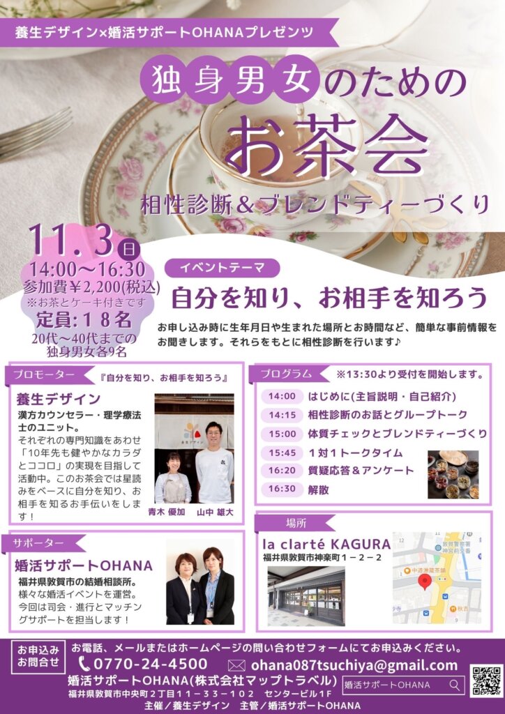 20代〜40代までの独身男女の皆さま!! 11月3日(日)は14時〜敦賀市la clarté KAGUR… -