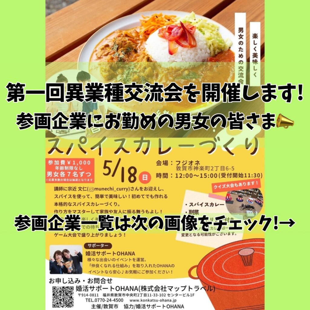 敦賀市×婚活サポートOHANAプレゼンツ第一回異業種交流会『スパイスカレーづくり交… -