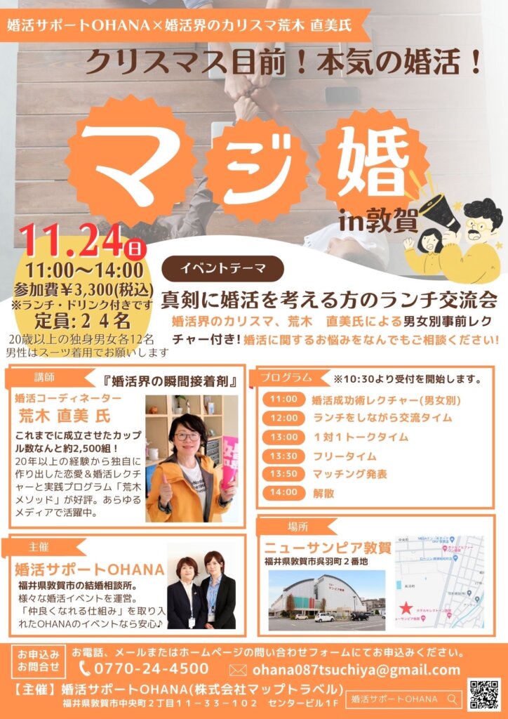 婚活界のカリスマ荒木 直美氏が敦賀にやってくる!!クリスマス目前!本気の婚活「マジ婚」を開催します!